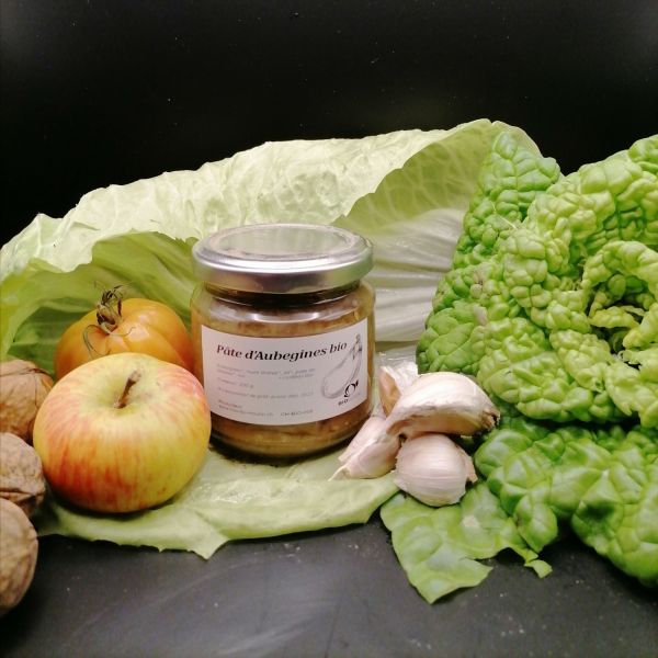 Pâte d'aubergines bio grillées avec ail et sésame. A tartiner ou pour l'apéro
