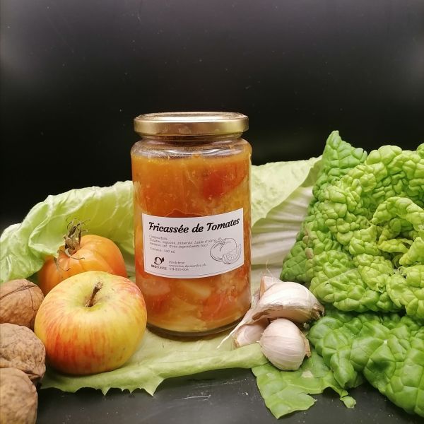 Fricassée de tomates de diverses couleurs, grillées avec oignon, ail, romarin.. et un peu de piment