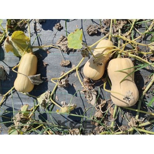 Grande courge à la peau grise, la chair dense et orange, excellente conservation et excellent saveur.