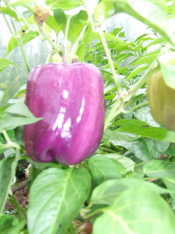 Magnifique poivron violet virant au rouge à maturité (mais il est tellement beau dans sa forme violette qu’on a jamais envie de le laisser murir..)